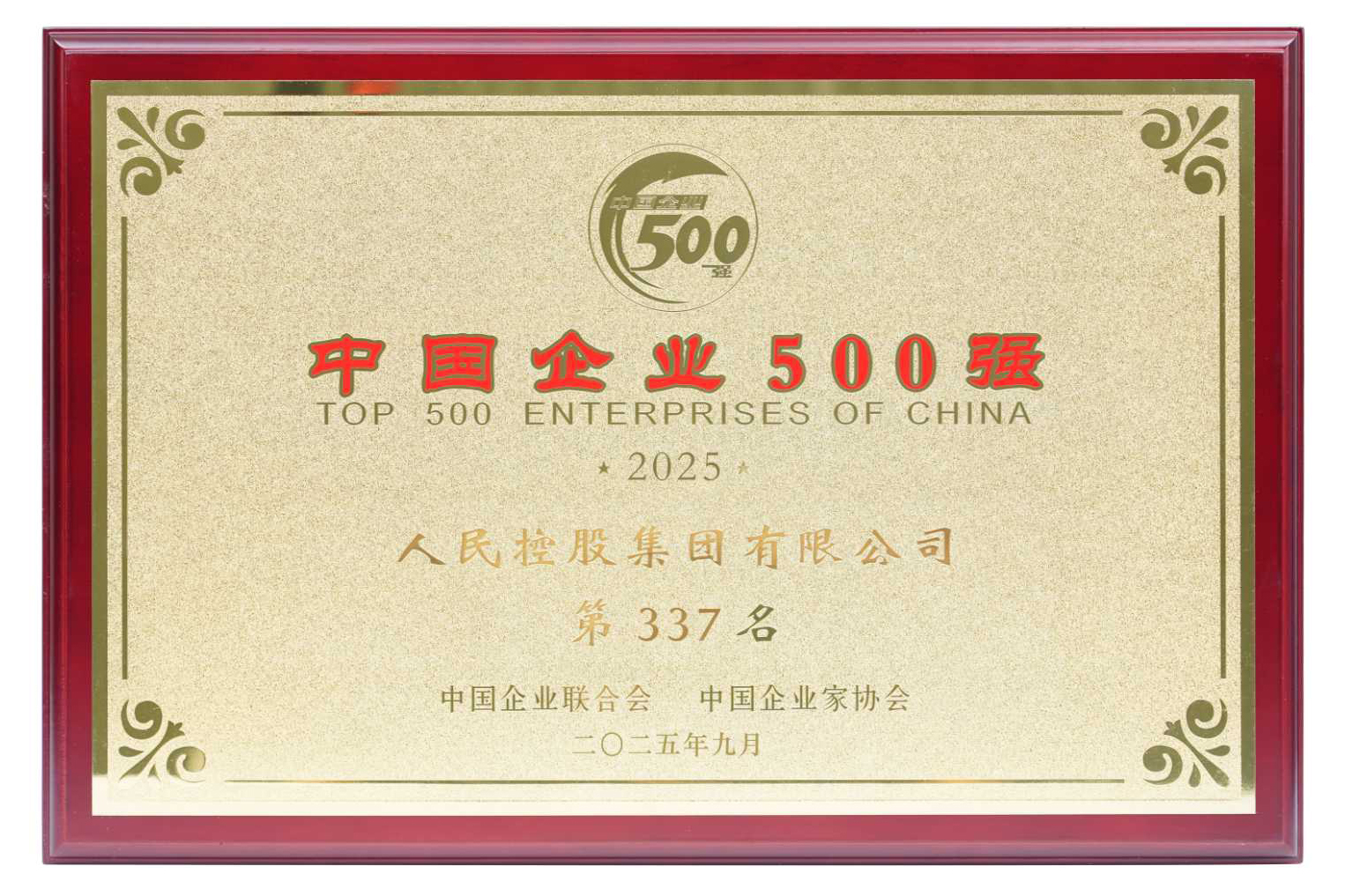 9月15日,中國企業聯合會、中國企業家協會正式發布"2025中國企業500強"榜單,中國·人民控股集團以729.58億元的營業收入榮列第337位,排名較上年大幅提升40位,顯示出集團卓越的經營能力和持續的成長性。